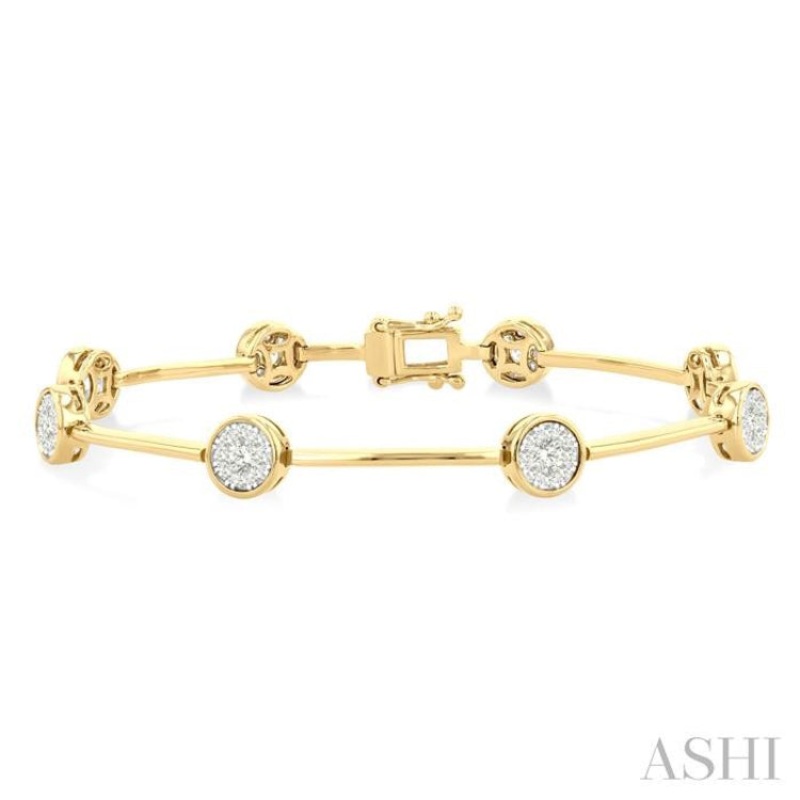 Another standout piece from the grand Lovebright Collection, this diamond bracelet is a truly luminous addition to any jewelry collection. It features a chic combination of 8 circular links, elegantly connected by sleek, plain gold bar links, adding a touc