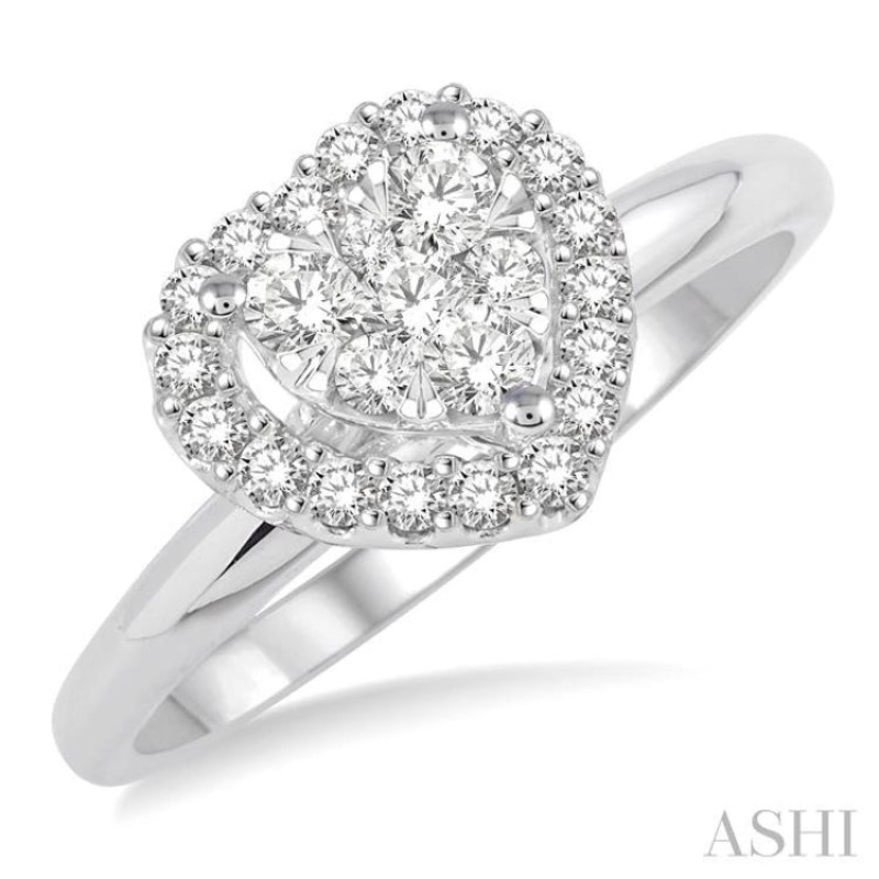 1/2 Ctw Round Cut Diamond Heart Shape Lovebright Ring in 14K White Gold