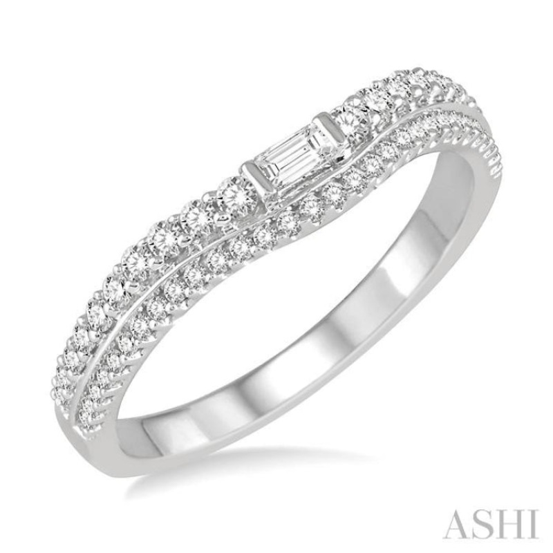 1/3 ctw Step Shank Baguette Center Round Cut Diamond Wedding Band in 14K White Gold