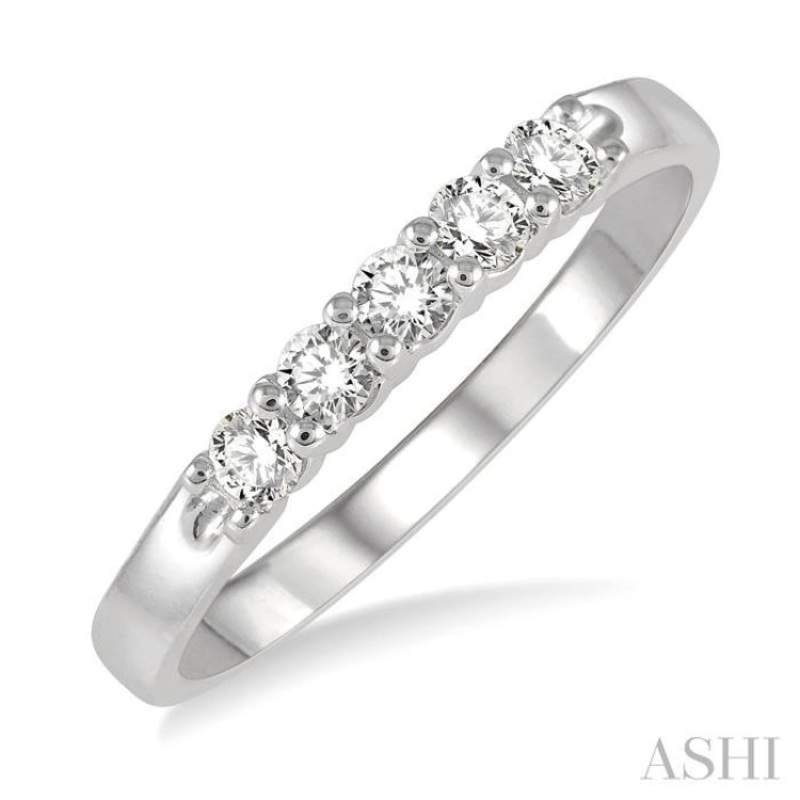 1/4 ctw 5 Stone Round Cut Diamond Wedding Band in 14K White Gold