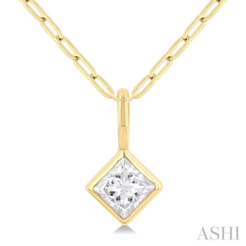 1/5 ctw Princess Cut Bezel Set Diamond Fashion Pendant With Paper Clip Chain in 14K Yellow Gold