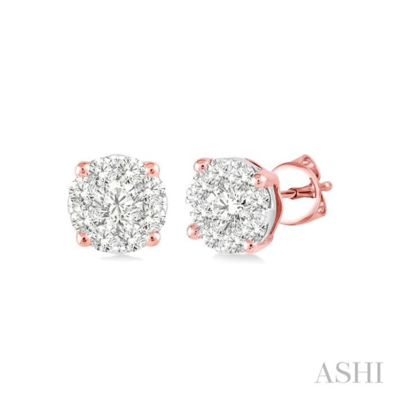 Captivate her with the dazzling and stunning look of these mesmeric Lovebright diamond earrings. Beautifully crafted in luminous 14 karat rose gold these gorgeous diamond earrings feature 18 round cut diamonds, perfectly invisible set. These earrings close with a secure clasp. Total diamond weight is 1/6 ctw.