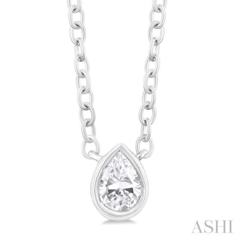 1/6 Ctw Petite Bezel Set Pear Cut Diamond Fashion Pendant With Chain in 10K White Gold