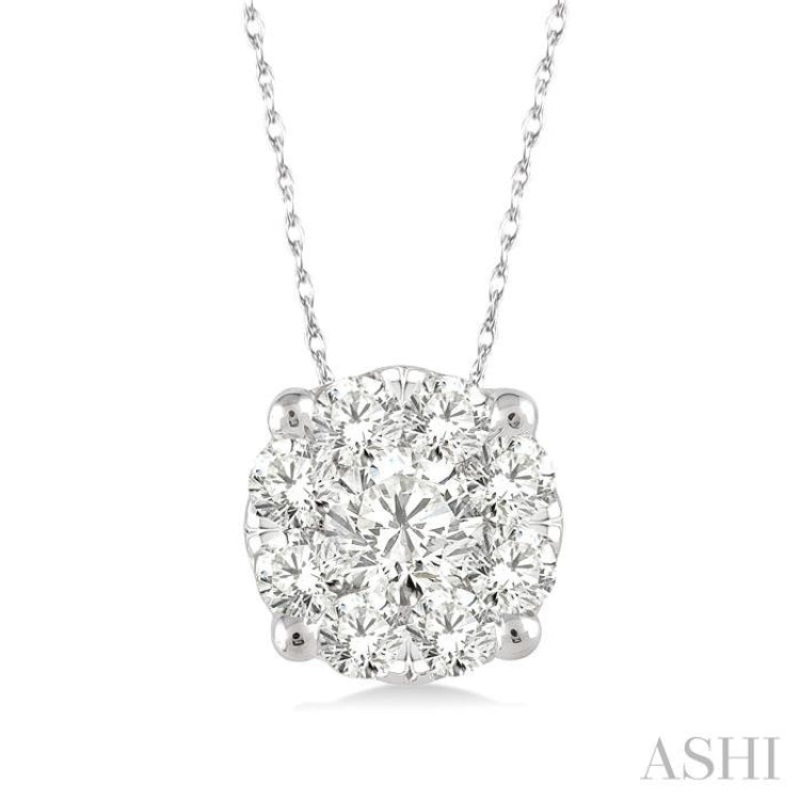 A captivating design, this Lovebright diamond pendant is an exceptional gift for your sweetheart. Beautifully crafted in luminous 14 karat white gold this gorgeous diamond pendant features 9 round cut diamonds, perfectly invisible set. This pendant hangs w