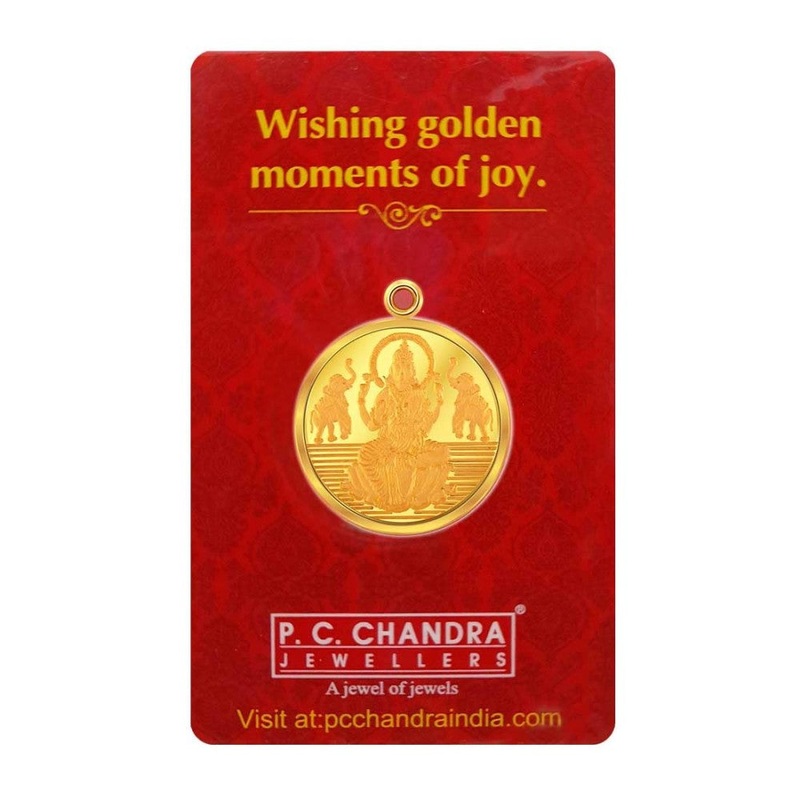 Welcome this festive season with the choicest blessings and good fortune that Goddess Lakshmi bestows upon her devotees. This 10 gm 22k gold coin pendant is everything dazzling and wonderful, intricately crafted with the motif of Devi Lakshmi. She is the H
