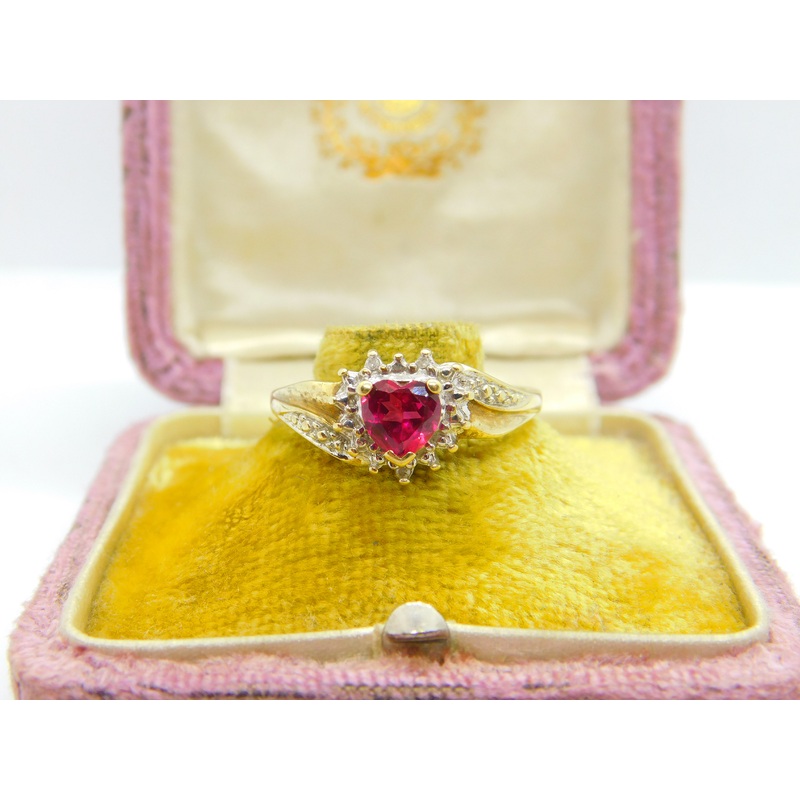 Details: A fantastic and wonderfully designed vintage 10ct yellow gold band ring set with heart cut natural ruby approx 0.5ct hallmarked 10k to the interior and the stones have been tested. This is a wonderful item that would make a perfect gift or additio