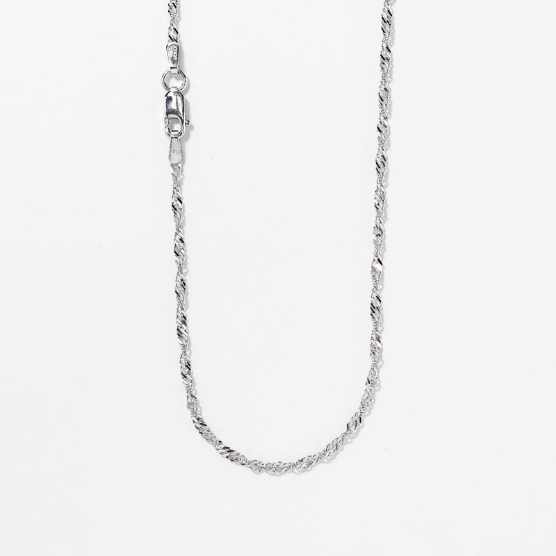 Get ready to captivate and radiate in this lovely white gold Singapore Chain! It's a true head-turner, showcasing unmatched brilliance that's both delicate and absolutely stunning. This chain measures 1.7mm in width and 18" in length.