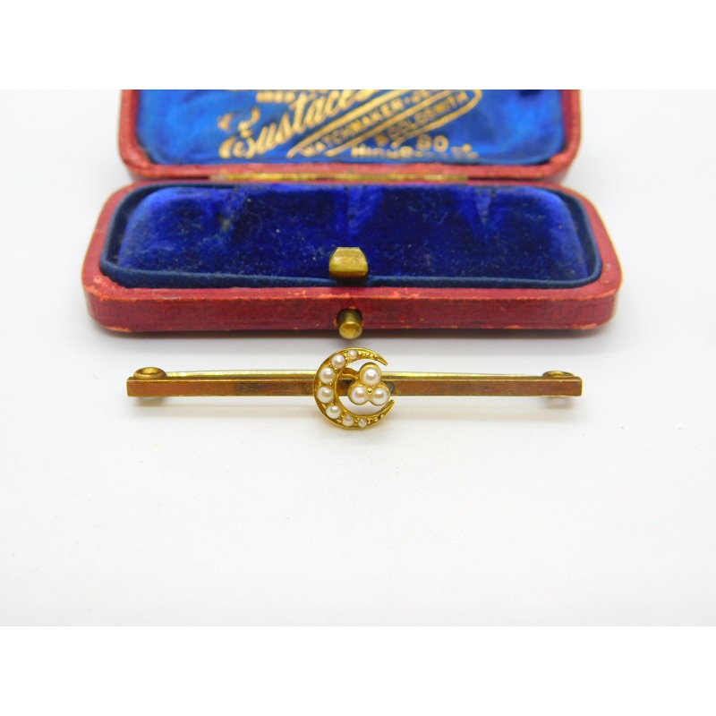 Be the first to review “12ct Yellow Gold Cased & Seed Pearl Crescent Sweetheart Brooch c1920 Antique”