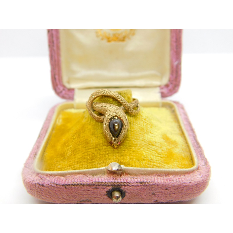 Details: A fantastic and wonderfully designed vintage 14ct yellow gold snake or serpent ring set with cabochon star sapphire alongside ruby set eyes hallmarked to the interior band c1970. This is a wonderful item that would make a perfect gift or addition to any collection. The BOX pictured is for PRESENTATION ONLY and is NOT included in the listings but used to frame the pictures unless specifically stated otherwise.