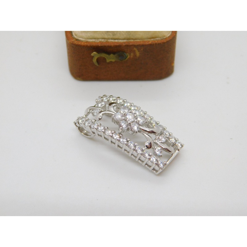 Details: A fantastic and wonderfully designed vintage 14ct white gold floral drop pendant set with CZ stones hallmarked to the reverse c1990. This is a wonderful item that would make a perfect gift or addition to any collection. The BOX pictured is for PRESENTATION ONLY and is NOT included in the listings but used to frame the pictures unless specifically stated otherwise.