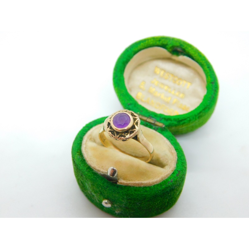 Details: A fantastic and wonderfully designed antique art deco 14ct yellow gold & amethyst set floral cluster ring hallmarked to the interior band c1920. This is a wonderful item that would make a perfect gift or addition to any collection. The BOX picture