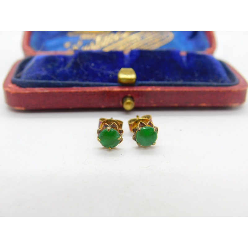 Details: A fantastic and wonderfully designed vintage 14ct yellow gold floral style jade set stud earrings with lovely detail marked 585 to the backs. This is a wonderful item that would make a perfect gift or addition to any collection. The BOX pictured i
