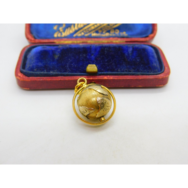 Details: A fantastic and wonderfully designed vintage 14ct yellow gold rotating globe geographical charm or pendant hallmarked to the edge c1970. This is a wonderful item that would make a perfect gift or addition to any collection. The BOX pictured is for