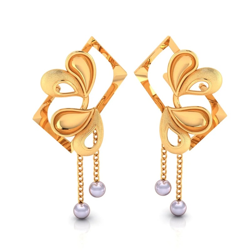 Enhance your elegance with these 14k gold earrings having framed floral studs adorned with delicate pearl dangles. The intricate floral design adds a touch of vintage charm, while the pearls provide a graceful finishing touch. Perfect for special occasions