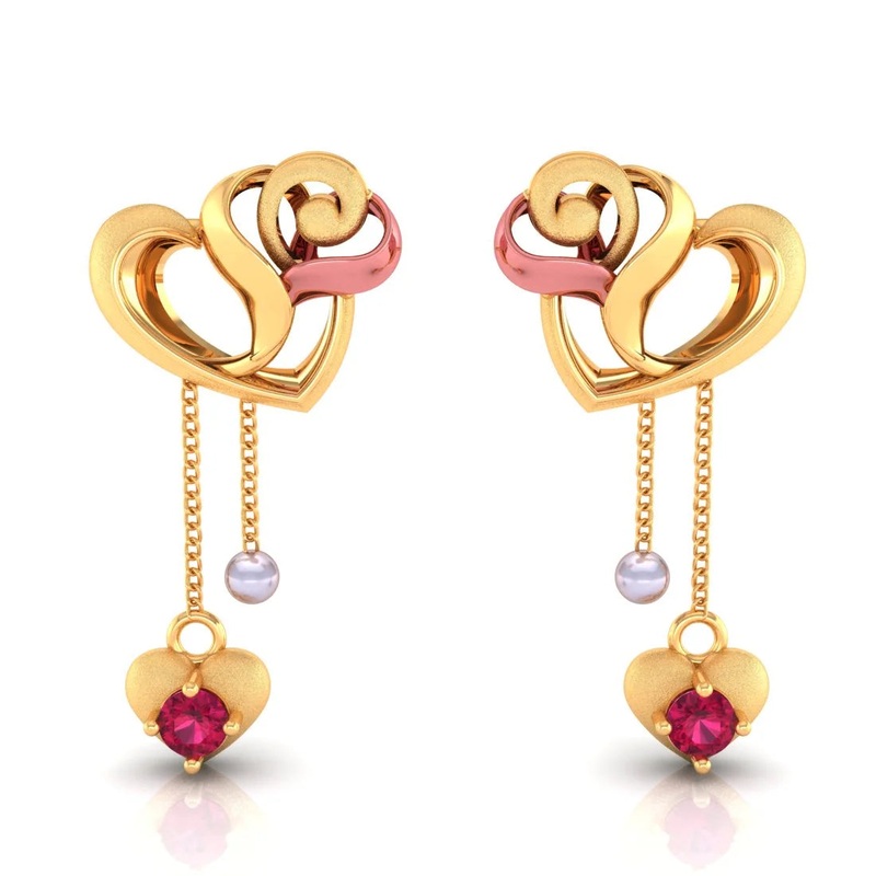 These 14k gold earrings having interlocking hearts design, symbolise love and unity. The delicate heart and pearl danglers add an elegant and playful touch, making them perfect for any occasion. A timeless piece, these earrings combine sophistication with a meaningful, romantic flair, making them a must-have addition to your jewelry collection.