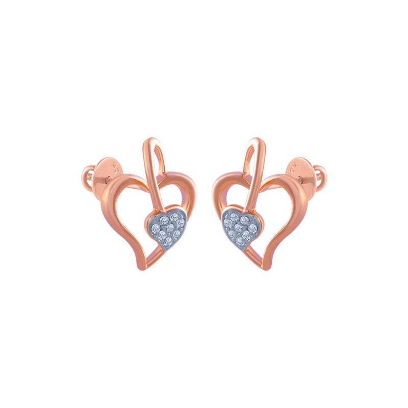 14k (585) Rose Gold And Diamond Stud Earrings For Women