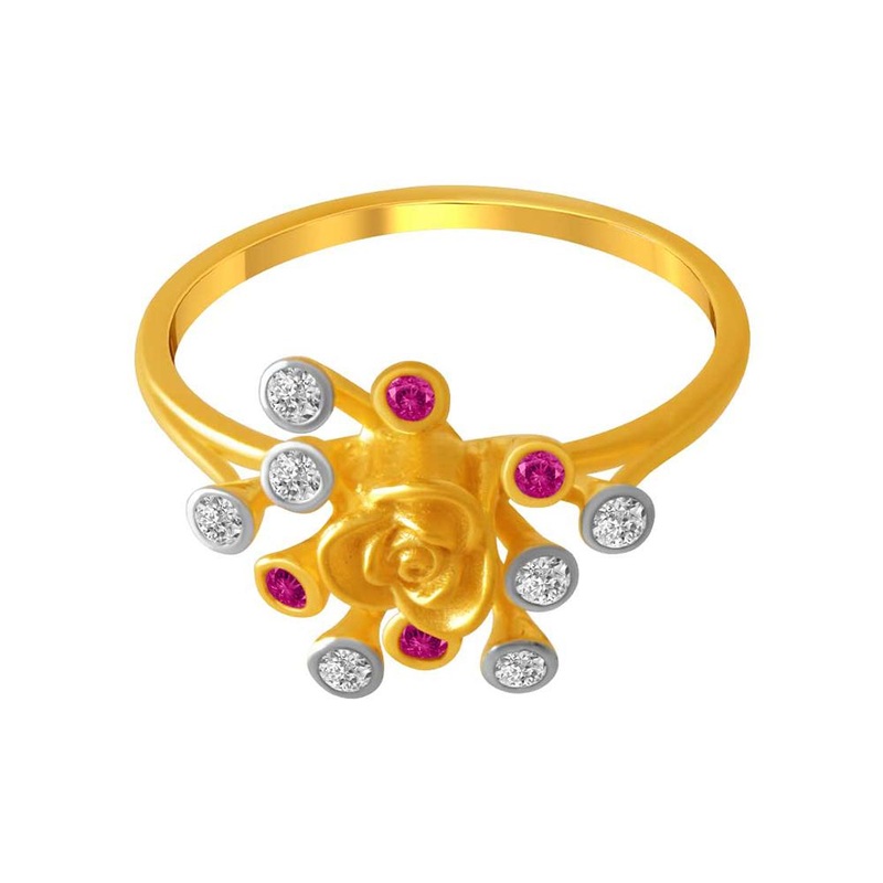 Make an eternally elegant statement with this floral pink and white ring. Dainty 14K gold ring studded with pink and white s around the bloomed flower. Wrapped symbolically around the finger, the sparkling gems and glistening flower petals signify ever-lasting love in the form of a pretty bouquet that will never wilt.