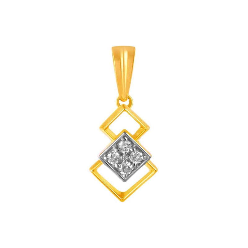 V72413580214k Gold Pendant With Overlapping Squares And Diamond Detail