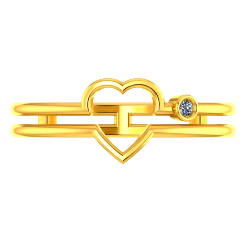 The 14K gold ring is a simple and elegant piece of jewellery. It is made of yellow gold, has a classic heart shape at the centre and a diamond stud. The ring is polished to a high shine and has a smooth band that is comfortable to wear. It is available in a variety of sizes to fit most fingers.