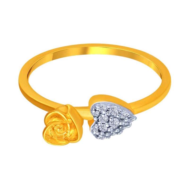 Crafted in lustrous 14K gold, this exquisite ring features a dazzling rose and a heart shape that embodies romantic devotion. Sparkling round white s, embellish the graceful heart silhouette in elegant style with contemporary appeal. Intended to symbolize affection, admiration and passion that knows no bounds, this unique and gold heart ring makes the ultimate gift for your beloved.