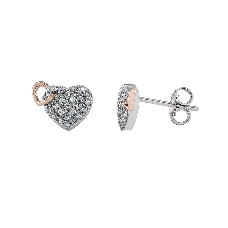 14K White and Rose Gold 0.31 ct. tw. Pave Diamond Interlocking Heart Stud Earrings
