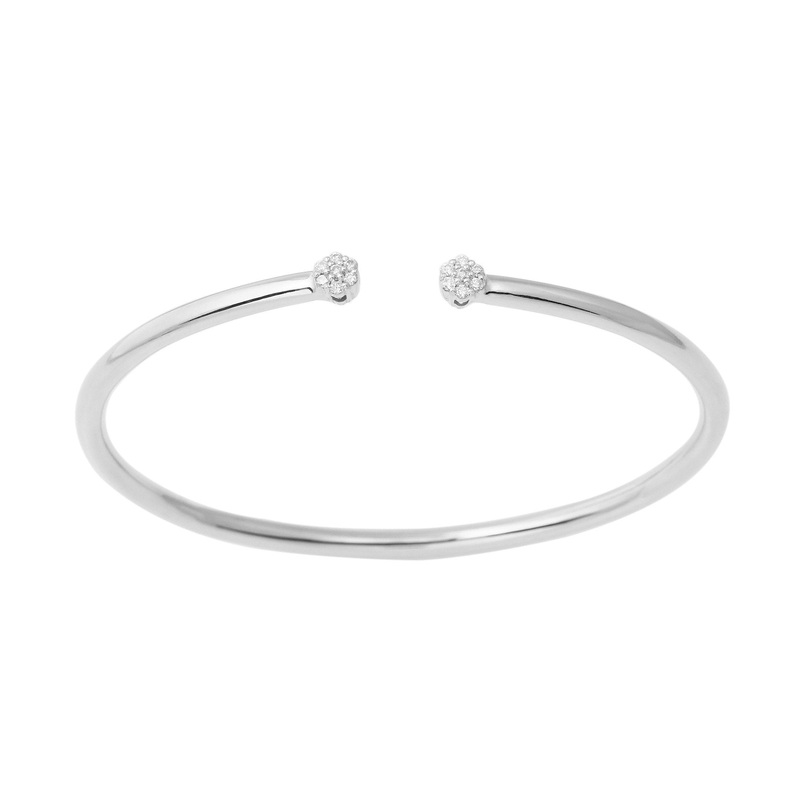 Diamonds can turn an everyday outfit into something magical. They add sophistication and flair to your wardrobe. You are never under-dressed when you wear your diamonds, which can make you feel more confident, poised and composed. Wherever you go, diamonds always look good. Shop our collection of flexible diamond bangles in various 14K metals.Featuring a diamond floral cluster detail, this banglecan be worn alone or stacked for a bolder look.