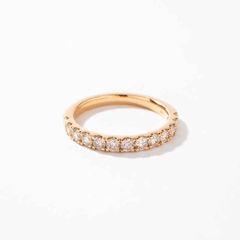 Commence your anniversary celebration in style with the gift of this breathtaking anniversary ring. Finely crafted in14K yellow gold, this exquisite ring showcases a dazzling arrangement of 13 enchanting round brilliant diamonds, with a combined total diamond weight of 0.75 carats. With its undeniable beauty, this remarkable ring serves as a perfect symbol of your enduring love and devotion, making it an unforgettable anniversary token.