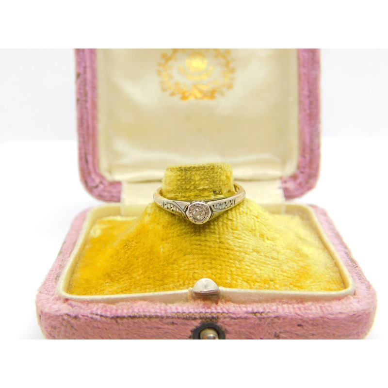 Details: A fantastic and wonderfully designed antique art deco 18ct yellow gold and platinum set 0.1ct diamond solitaire ring marked 18ct and Plat to the interior c1920. This is a wonderful item that would make a perfect gift or addition to any collection.