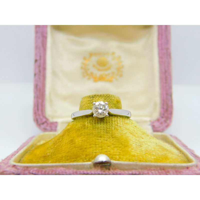 Details: A fantastic and wonderfully designed vintage 18ct white gold solitaire or engagement ring set with natural round cut 0.5ct diamond hallmarked Sheffield c2000 to the interior and marked 0.5ct - the diamond has also been tested and is of good qualit