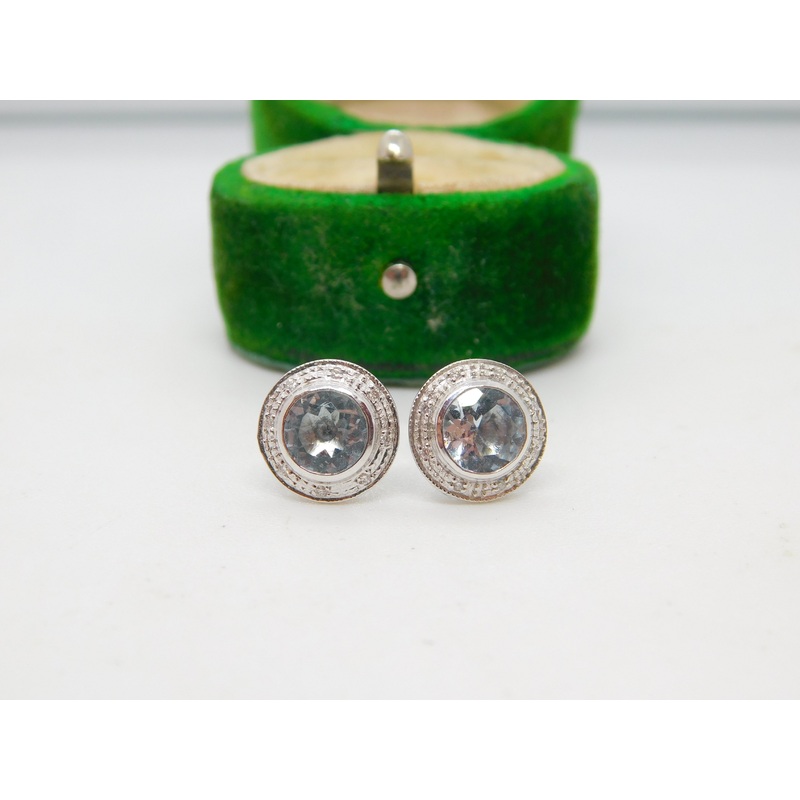 Details: A fantastic and wonderfully designed vintage 18ct white gold stud earrings set with aquamarine stones approximately 1ct in weight each flanked by diamonds hallmarked to the reverse c1980. This is a wonderful item that would make a perfect gift or