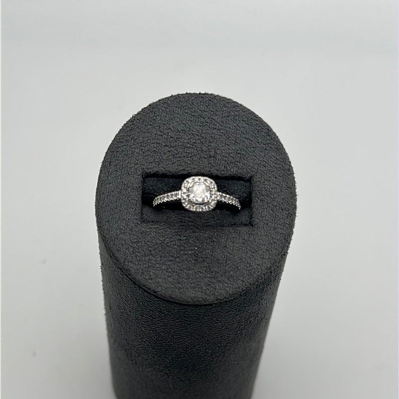 This stunning 18ct white gold diamond engagement ring is set with brilliant cut diamonds in a illusion setting in a pear shape with a halo of brilliant cut diamonds surrounding and running down the shoulders.This item is pre-loved so may show signs of wear