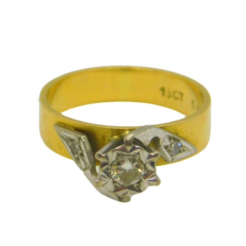 18ct Yellow Gold & 0.2ct Diamond Solitaire Dress Ring Antique c1920 Art Deco