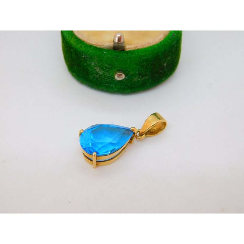 Details: A fantastic and wonderfully designed vintage 18ct yellow gold drop pendant set with pear cut blue topaz marked K18 to the bale and XRF tested c1980. This is a wonderful item that would make a perfect gift or addition to any collection. The BOX pic