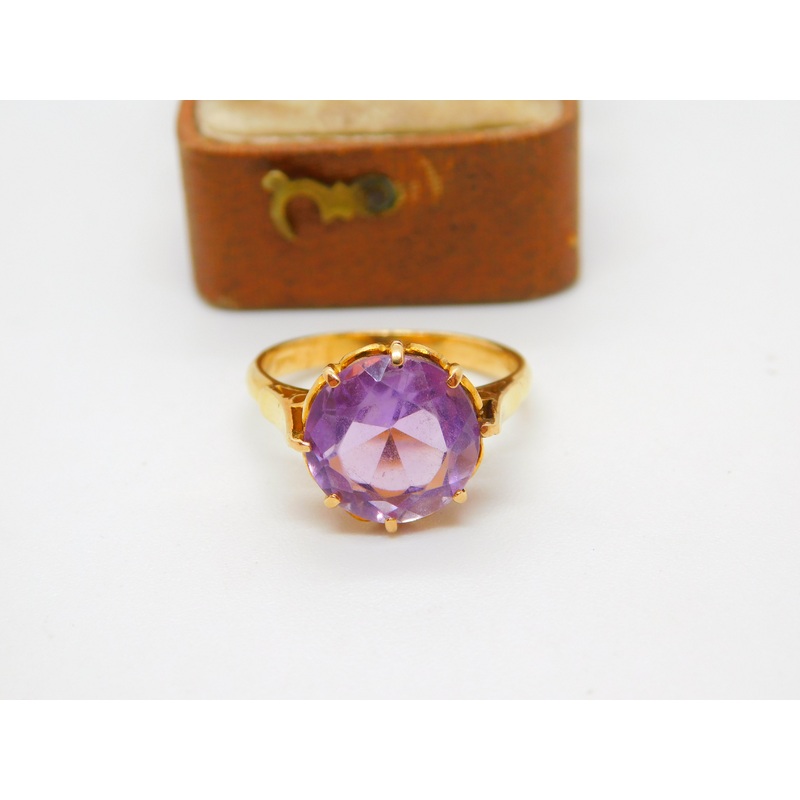 Be the first to review “18ct Yellow Gold Brilliant Cut Amethyst Dress Ring Vintage c1970 Size N 1/2 UK”