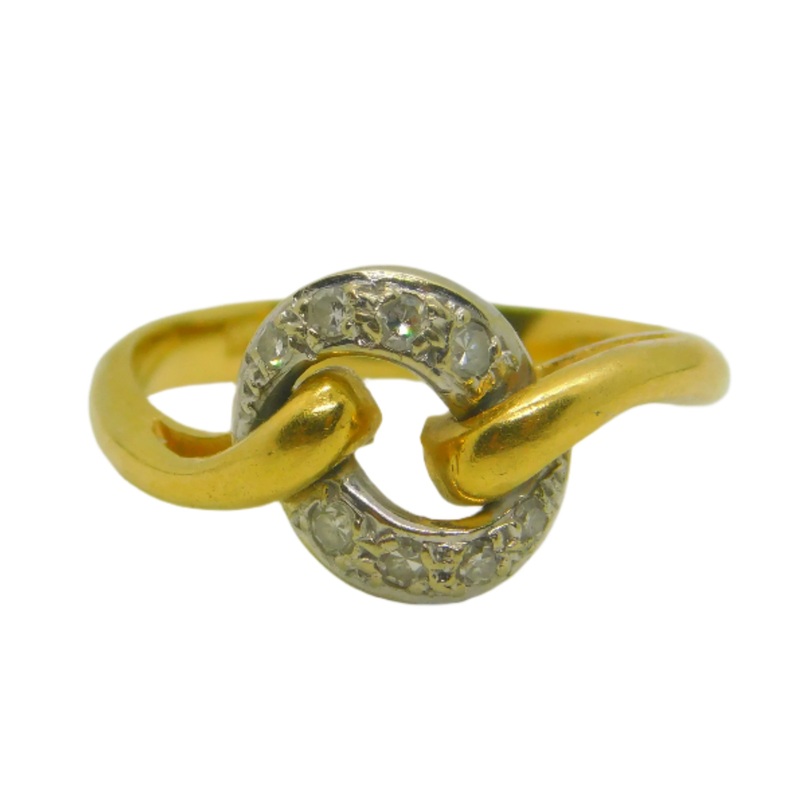 18ct Yellow Gold & Diamond Set Crossover Ring Vintage 1980 London