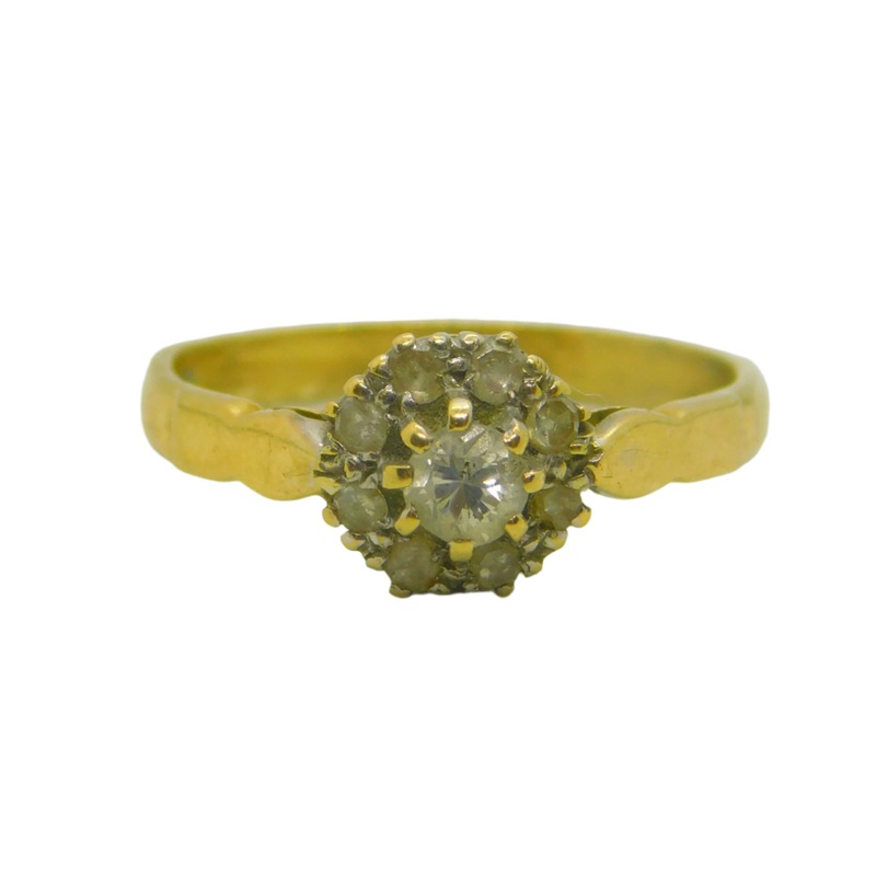 Details: A fantastic and wonderfully designed vintage 18ct yellow gold & diamond set floral cluster ring hallmarked Birmingham 1996 to the interior, the diamonds have been tested. This is a wonderful item that would make a perfect gift or addition to any c