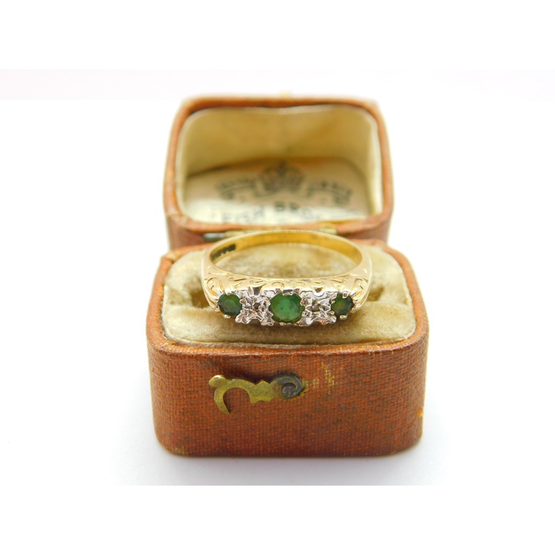 18ct Yellow Gold, Emerald & Diamond Set Boat Ring Vintage c1970 London