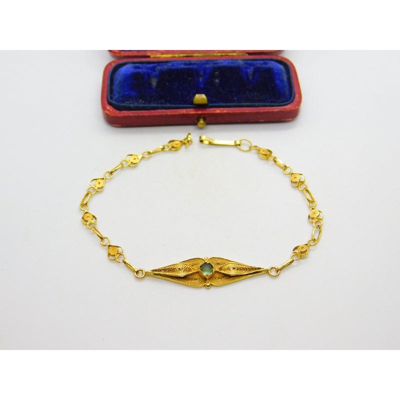 Details: A fantastic and wonderfully designed antique art deco 18ct yellow gold filigree form panel bracelet with super heart patterns set with central sea glass hallmarked 18ct in multiple places c1920. This is a wonderful item that would make a perfect gift or addition to any collection. The BOX pictured is for PRESENTATION ONLY and is NOT included in the listings but used to frame the pictures unless specifically stated otherwise.