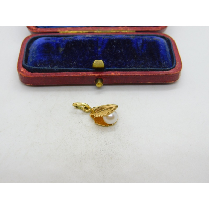 Details: A fantastic and wonderfully designed vintage 18ct yellow gold Pearl in the Clam charm or pendant with lovely detail hallmarked to the bale c1980. This is a wonderful item that would make a perfect gift or addition to any collection. The BOX pictur