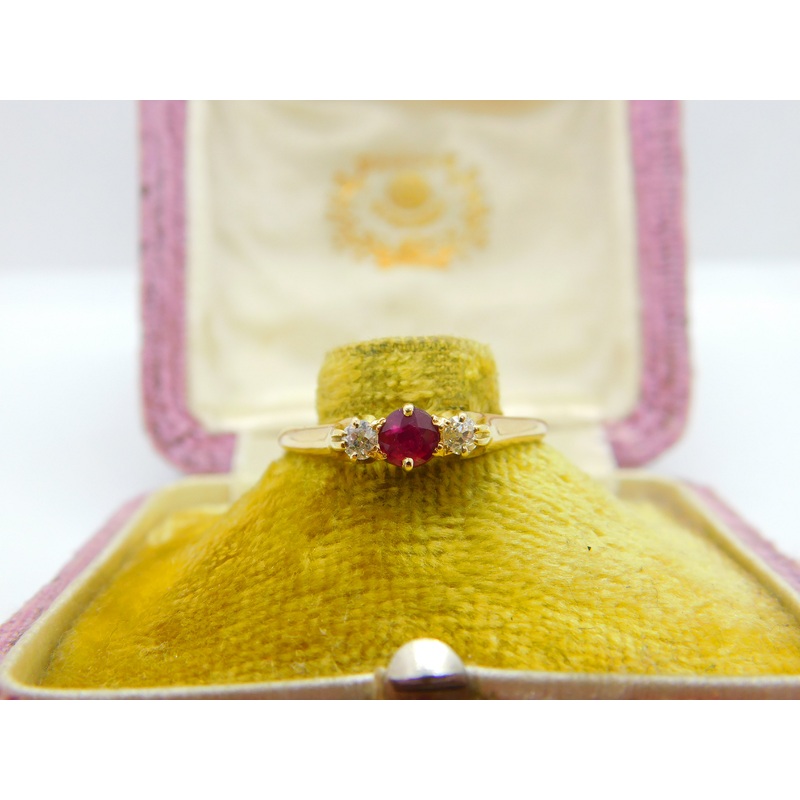 Details: A fantastic and wonderfully designed antique art deco 18ct yellow gold band ring set with central ruby surrounded by approx. 0.1ct of diamonds hallmarked to the inner band c1930. This is a wonderful item that would make a perfect gift or addition