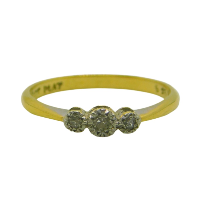 18ct Yellow Gold & Three-Stone Diamond Dress Ring Antique c1920 Art Deco