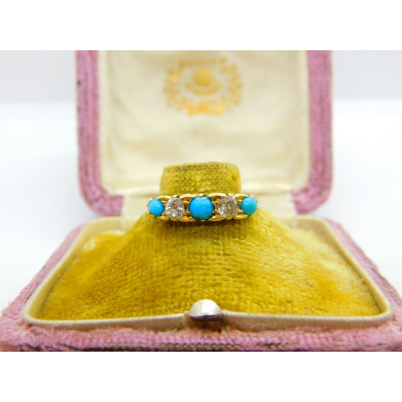 Details: A fantastic and wonderfully designed antique art deco 18ct yellow gold boat ring set with turquoise & diamonds (each stone approximately 0.2ct) hallmarked Birmingham 1913 to the interior. The stones have been tested. This is a wonderful item that