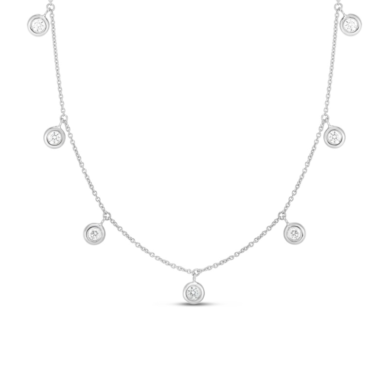 Diamonds by the InchDiamonds by the Inch with delicate chains and bezel set stones exude femininity - but layered they create a fresh look. 18KWhite GoldApprox 0.33 TCW DiamondsSeven Bezel Set DiamondsApprox. 17" Length Chain530011AWCHX0