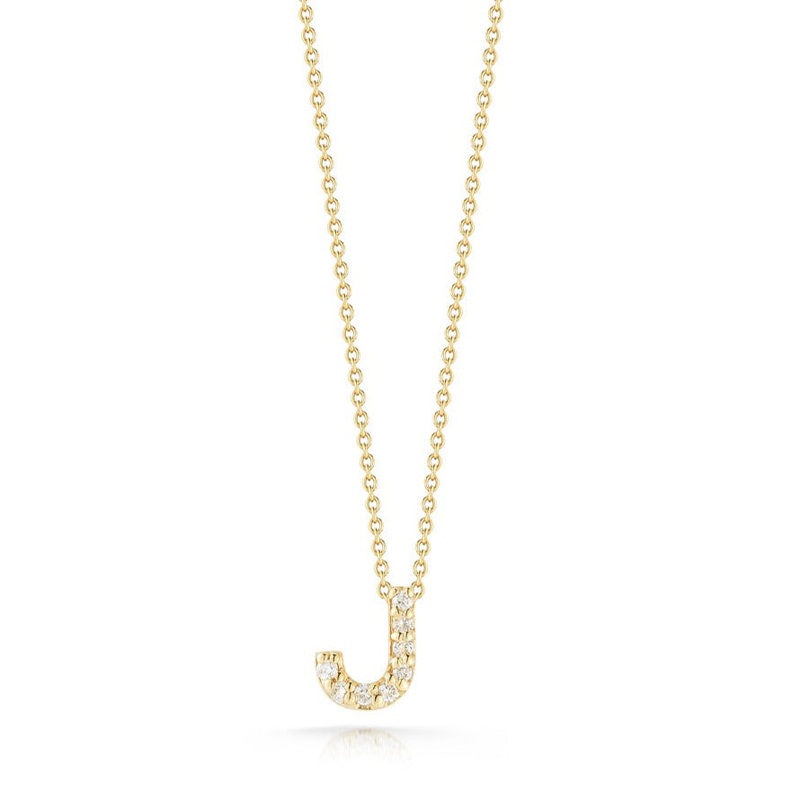 18K Yellow Gold Tiny Treasures Diamond Love Letter J Necklace