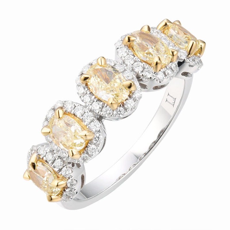 Diamond Wt:1.67CTTW (5 Centre Oval FCL Yellow 1.33CT, 70 White Diamond 0.34CT)