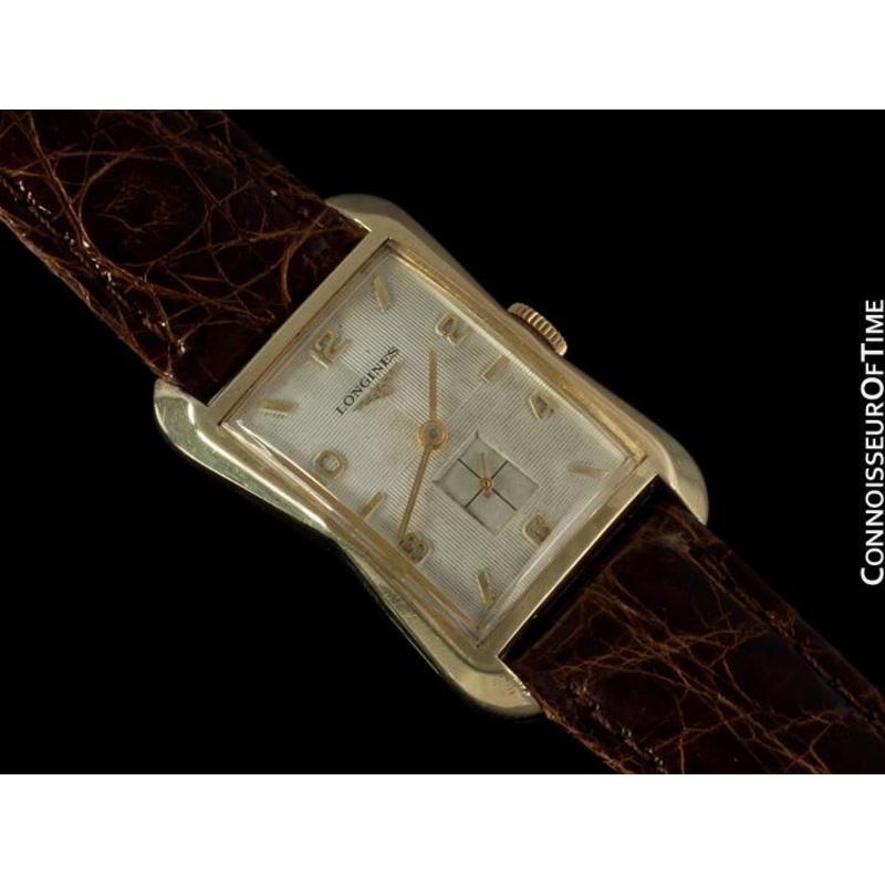 Longines made this distinctive watch for the U.S. market during the middle of the 1950's. It's easy to see how it came from the era that culminated with the '57 Chevy and the '59 Cadillac fin. It is interesting and original, yet elegant enough for discrimi