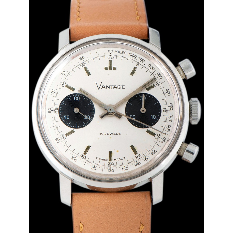 In the 1960s, Hamilton’s parent company bought a watch company called Vantage and began producing attractive, more budget-friendly “sister” watches to the Hamilton catalog. Those watches spanned the gamut from basic, super affordable pieces to ones like this fantastic two-register panda dial chronograph.