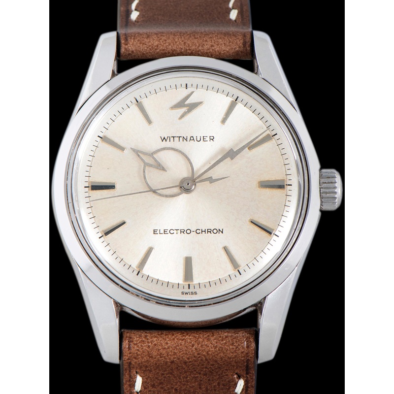 Stock # WITEC61502 Brand Wittnauer Style Electro-Chron Model 6150/2 Serial N/A Size Men’s Material Chrome W/ Stainless Steel Back Dial Silver Millimeters 35.5 Strap 2pc Handmade Leather Strap