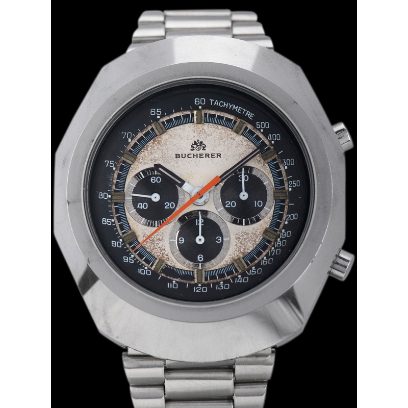 Like Turler, Tiffany and many large-scale jewelers, Bucherer also did a lot of co-branding and white labeling of watches, one of which is this incredible chronograph from the ’70s. In this case, this Bucherer is the twin sister watch to the Omega Seamaster Ref. 145.023, thoughthe piece we have here ismuch more rare than its more famous sibling.
