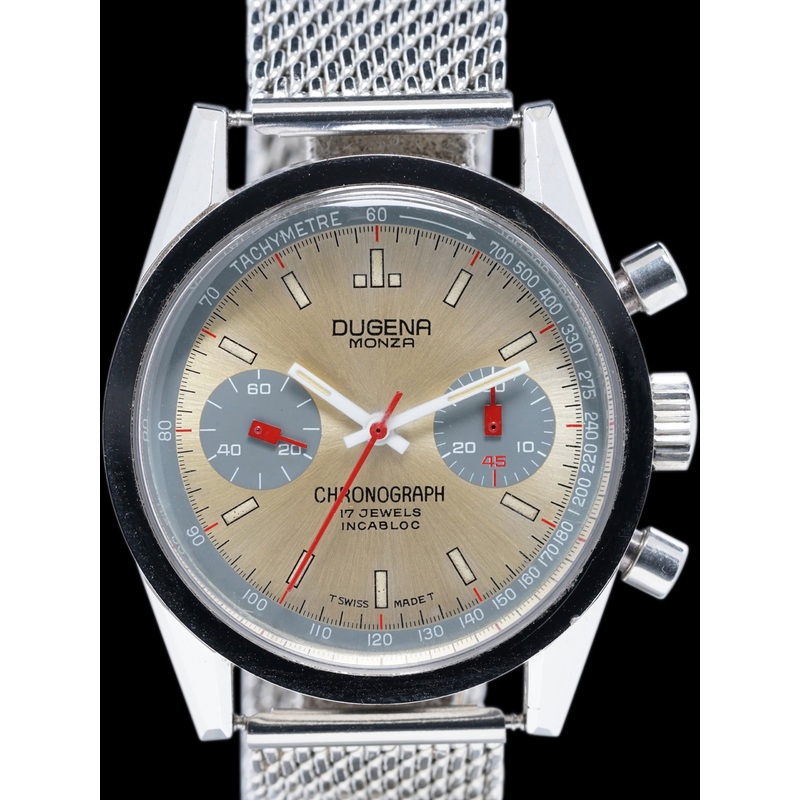 In 1942, with the Axis Powers finally defeated, the little-known brand, Dugena, was born. Or rather reborn, from the remains of the once-great watch brand, Alpina. The well-known company was disallowed from selling watches in Germany during the war, so at the first chance, they changed their name and once again began to build robust, gorgeous watches and found fantastic success. Dugena as a brand and this “Monza” model, in particular, are the types of things that make watch collecting so rewarding, and just straight-up fun.